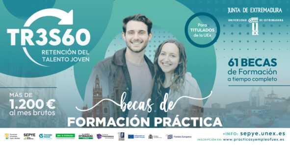 El Programa Retención Del Talento, en adelante “el Programa TR3S60”, es un Programa de Becas de Formación subvencionado por FSE+, a la Junta de Extremadura, desarrollado y gestionado por la Universidad de Extremadura (UEx), Vicerrectorado de Estudiantes, Empleo y Movilidad y por la Fundación Universidad Sociedad de la UEx (FUEx).